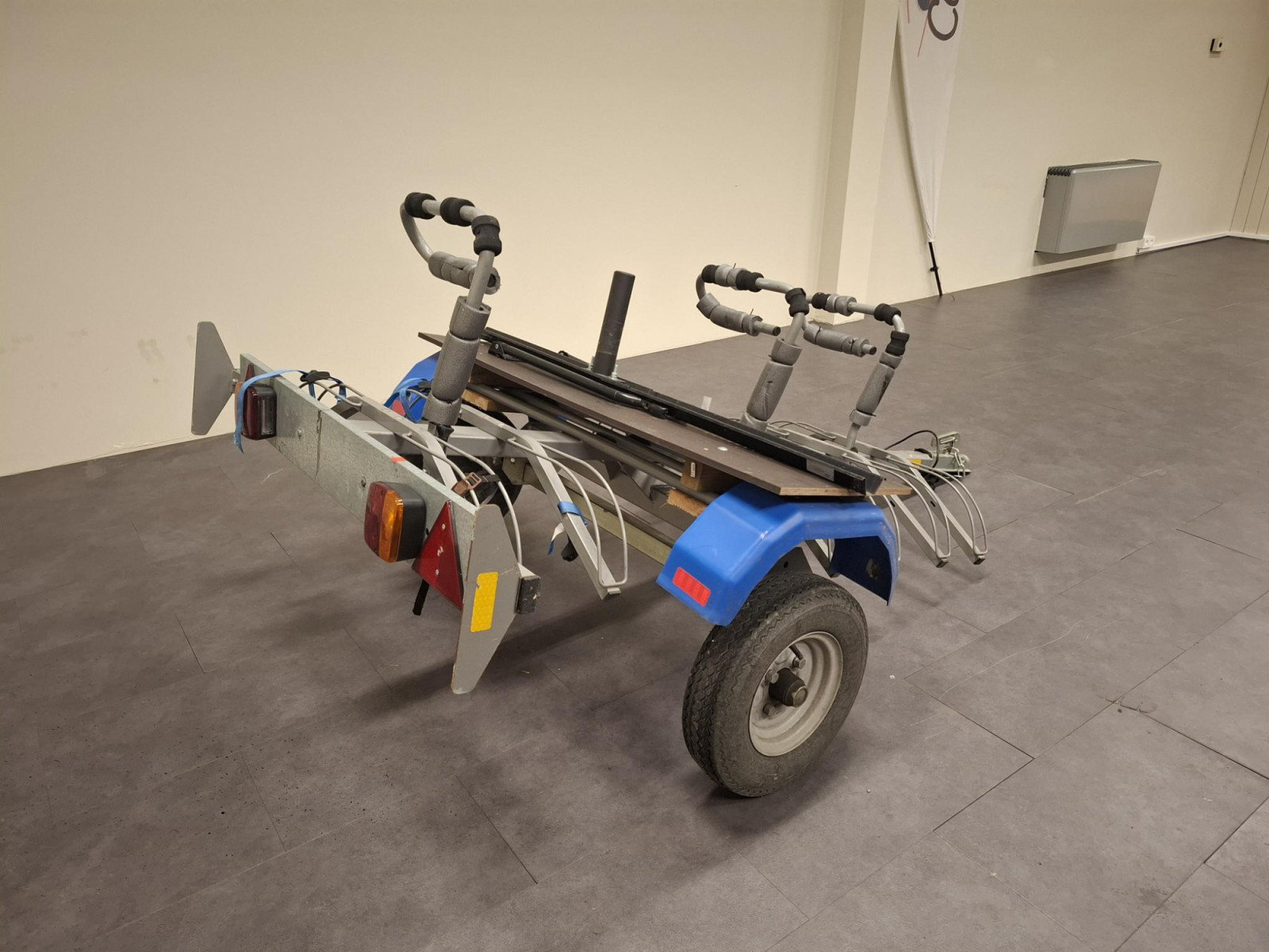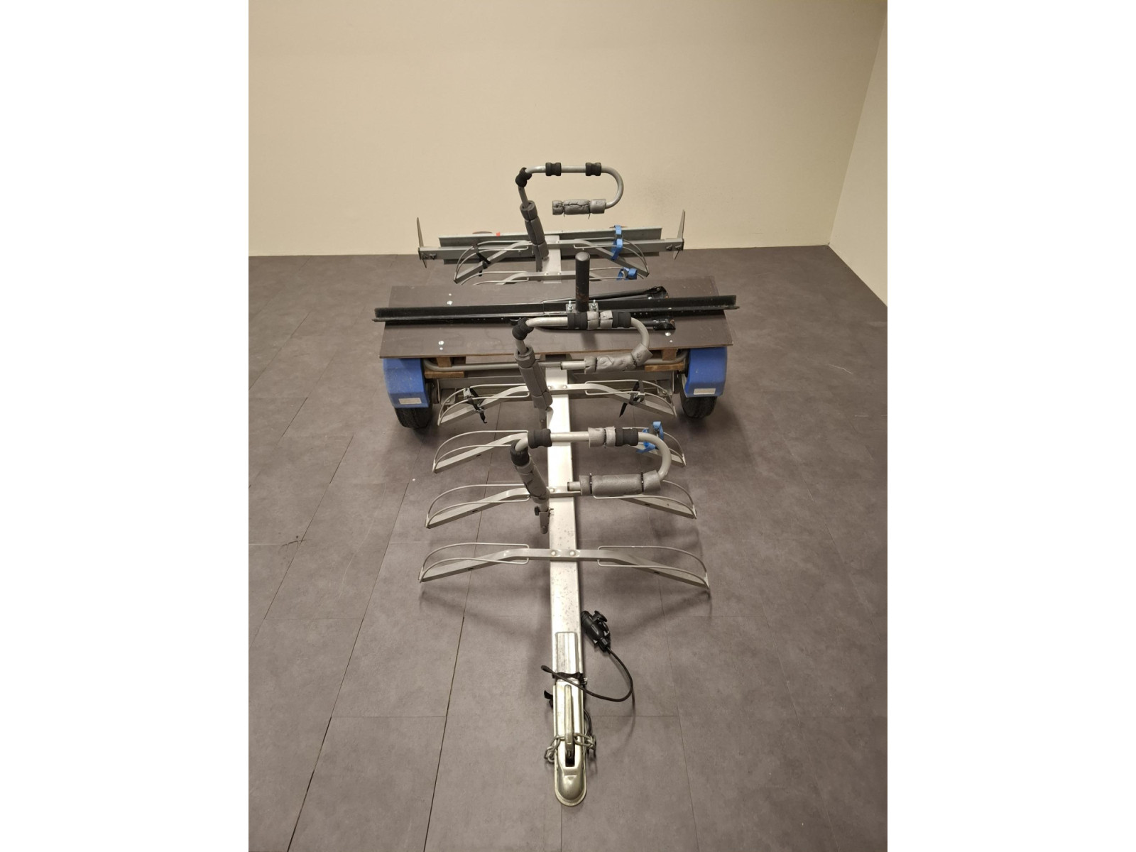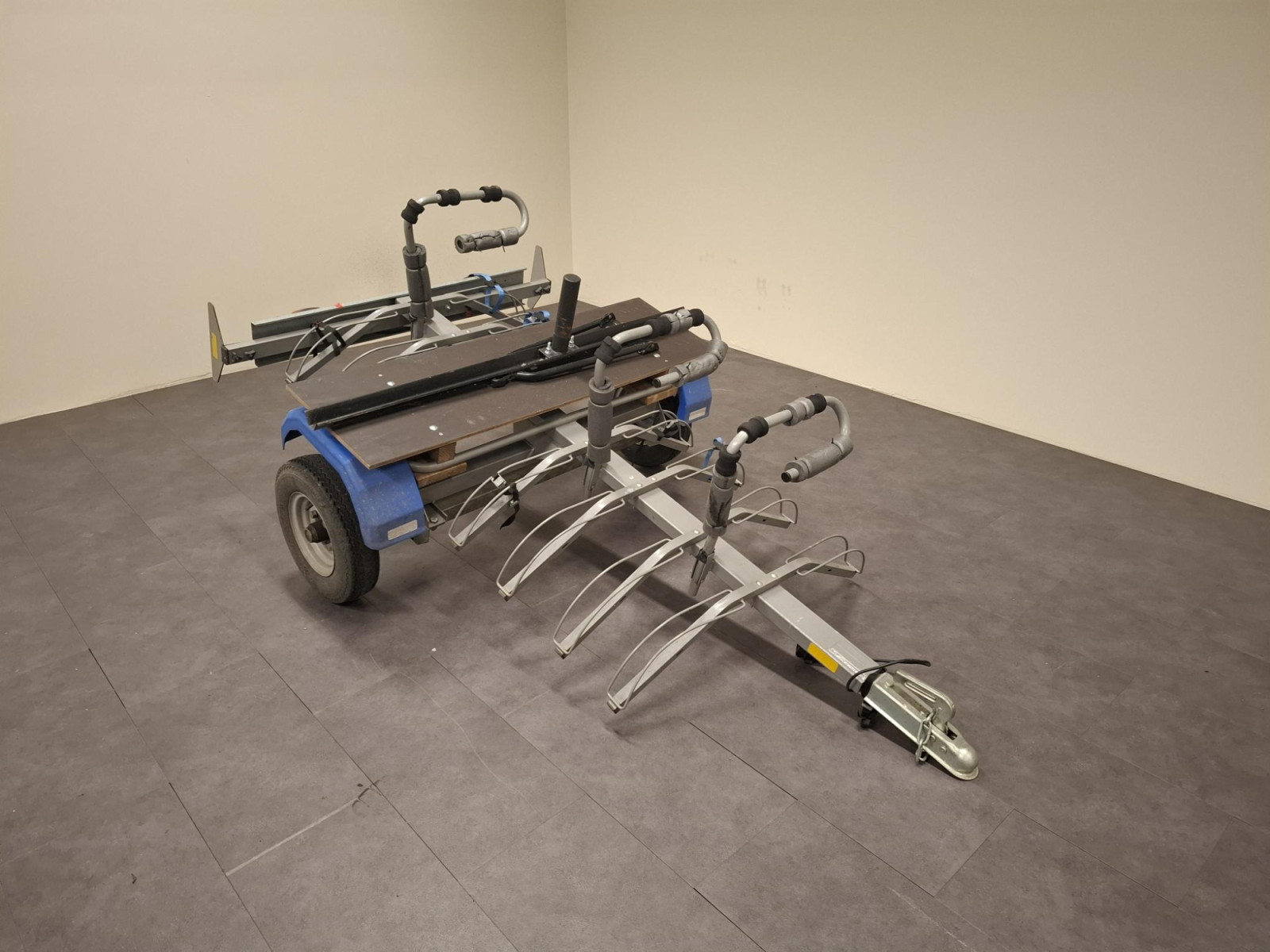 Cette remorque permet d'embarquer 6 vélos + une caisse de rangement.